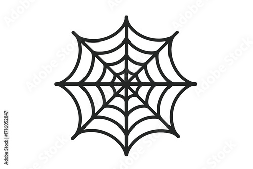 Spiderweb icon. Cobweb symbol for Halloween. Vector cartoon illustration. Scary spooky horror spider web sign. Black thin line art. Arachnid net trap, isolated on white.