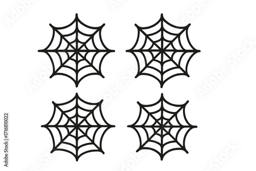 Spiderweb icon set for Halloween. Cobweb symbol vector graphic. Spooky horror design element. Scary spider web silhouette pictogram. Isolated net trap illustration.