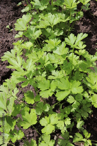 Spinach, dill and parsley in the garden. Salad greens. Summer harvest. Delicious food.