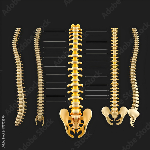 Spine structure anatomy set with isolated