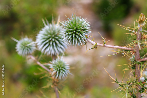 Spiny plant. Background with selective focus and copy space