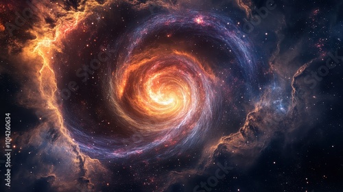 Spiral galaxy vortex with swirling stars and colorful nebulae