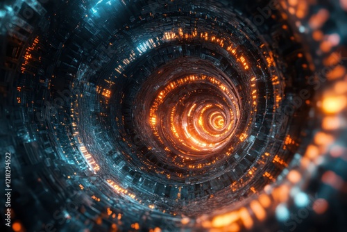 Spiral made of interconnected technology components, creating a tech spiral with intricate and vibrant details