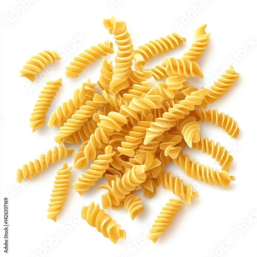 Spiral pasta, a pile of golden-yellow, textured pasta pieces