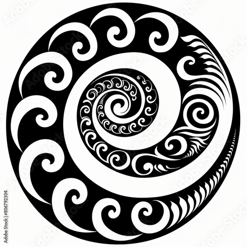 spiral, swirl, element, curve, tribal, design, art, decoration, curl, circle black and white ,
