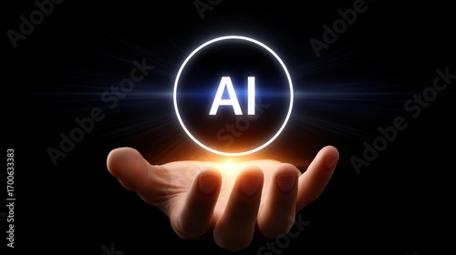 Spiritual tech concept chip in hand glowing with AI energy futuristic innovation digital light