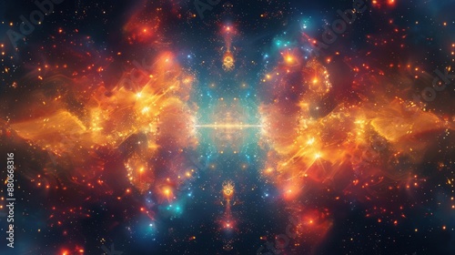 Spiritual union love of the universe abstract digital art, bright energy, heavenly light, starry background, deep space theme, bright colors, detailed pattern. spiritual connection