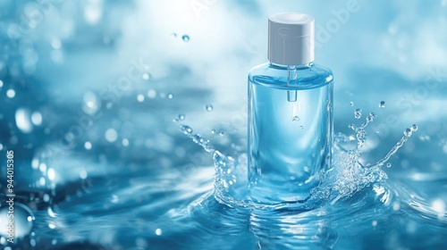 Splash cosmetic moisturizer water micellar toner or emulsion blue colored abstract background