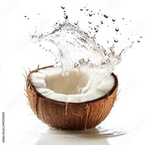 Splash of Coconut Water Erupts from Freshly Cut Coconut Shell