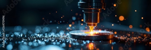 Splash water on a turned metal part during the CNC machining process, water splash, industry