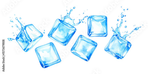 Splashing Ice Cubes with Crystal Clear Water – Freshness and Coolness in Motion
