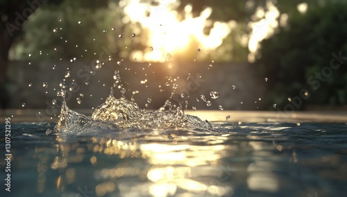 Splashing water in pool at sunset.