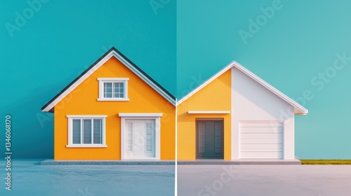 Split View of Modern House Designs Showcasing Bright Colors and Sleek Lines for Contemporary Architecture and Real Estate Concepts