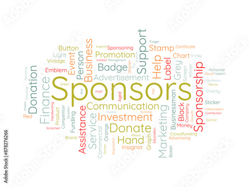Sponsors wordcloud template. Advertisement concept vector background.