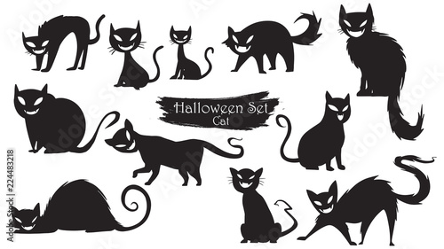 Spooky cats silhouette collection of Halloween vector isolated on white background. scary and creepy element icon character