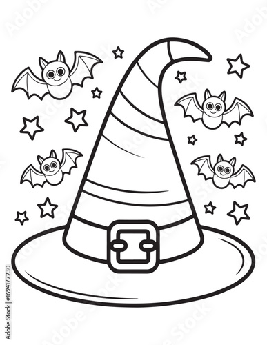 Spooky Halloween Coloring Book Pages For Kids-Adults, Vectors Illustration, Line Art, Black & White Designs, Bold-Easy, A4 Size 8.5x11" Inches