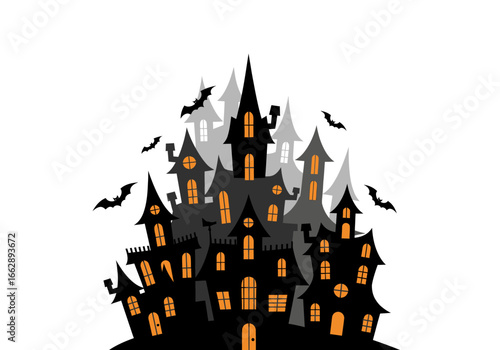 Spooky Halloween Haunted House with Bats, A Creepy Vector Graphic of a Haunted Mansion with Silhouetted Bats