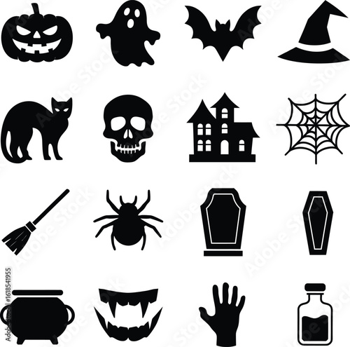Spooky Halloween Icons Set Black Silhouettes for Festive Designs