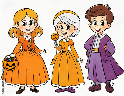 Spooky Halloween Kids Illustration: Trick-or-Treat Fun with Costumes and Candy