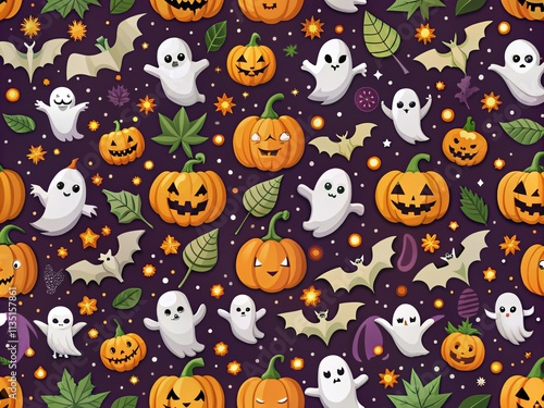 Spooky Halloween Pattern Featuring Pumpkins, Bats, and Other Festive Symbols Perfect for Seasonal Decor and Celebrations