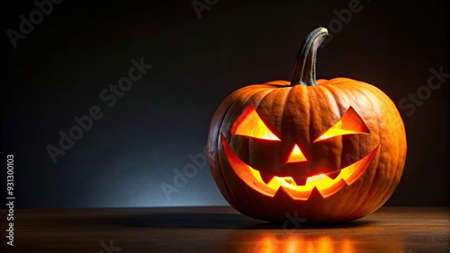 Spooky halloween pumpkin glowing in the dark, jack o lantern, autumn, holiday, creepy, orange, festive, tradition