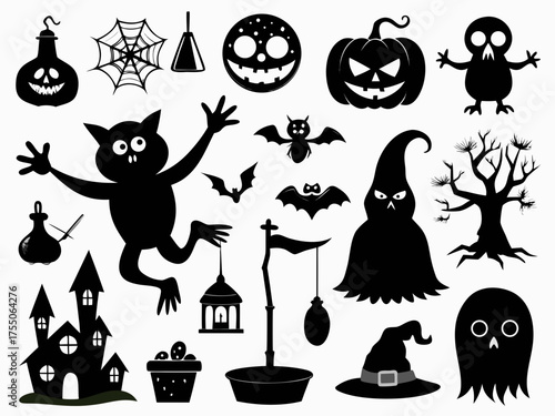 Spooky halloween silhouette vector illustration bundle for festive themed graphic design projects silhouette Vector white background