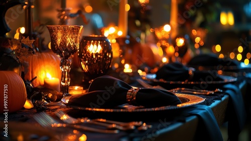 Spooky Halloween Table Decor with Pumpkin Centerpieces and Flickering Candles in Black and Orange Setting