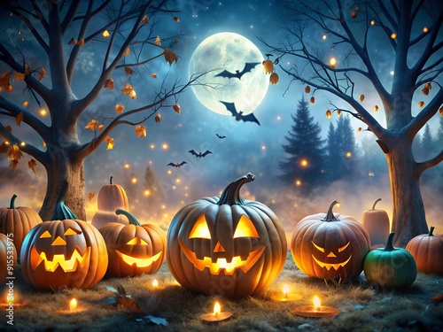 Spooky halloween theme background with pumpkins