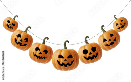 Spooky Jack-o'-lantern garland creates festive Halloween party atmosphere with playful carved faces