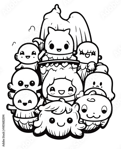 Spooky Kawaii Cute and Creepy Horror Coloring Pages, Art, Vector, Black And White Illustration