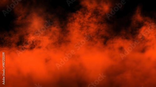 Spooky red and orange fog swirls creating a mysterious atmosphere against a dark black background, perfect for Halloween-themed designs and decorations, evoking feelings of fright and intrigue.