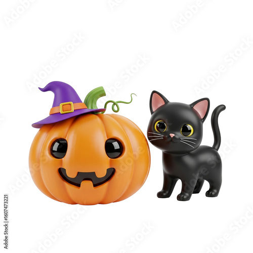 Spooky Season Cute Pumpkin With Witch Hat And Black Cat Friends