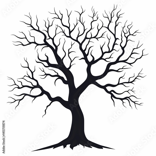 Spooky Silhouette Tree Artwork: Bare Branches and Organic Growth in Dark Eerie Landscape