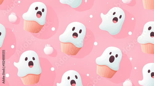 Spooky Sweet Delights - Kawaii Pastel Halloween Sweets Pattern with Cute Ghost Cookies & Monster Cupcakes