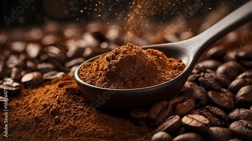 Spoon of Coffee Powder with Beans Background