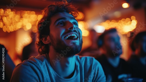 Sports fans watching a game at home, sports fans reacting to a close play, tension and excitement in the air.