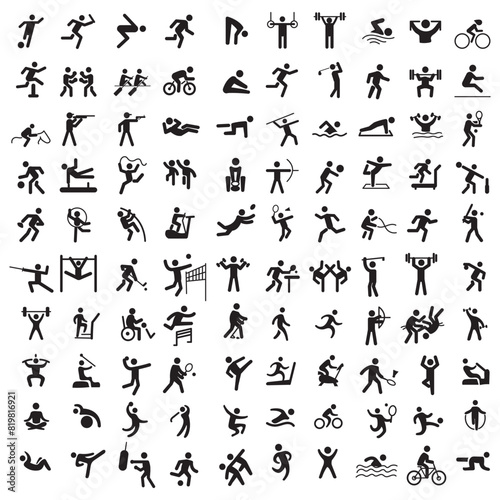 Sports icon set. Shapes Sports, Sports icon collection, Active lifestyle people and icon set, runners active lifestyle icons.