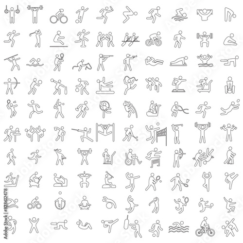 Sports icon set. Shapes Sports, Sports icon collection, Active lifestyle people and icon set, runners active lifestyle icons.