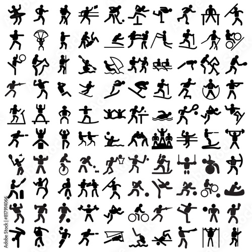 Sports icon set. Shapes Sports, Sports icon collection, Active lifestyle people and vitality vector icon set, runners active lifestyle icons.