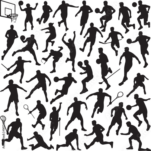 Sports Silhouette Vector Set – Athletes in Action Football, Basketball, and Running Player Silhouettes Fitness and Sports Vector Bundle for Logo and Design