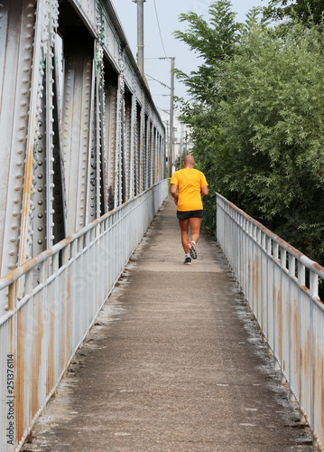 sportsman on an old railway bridge