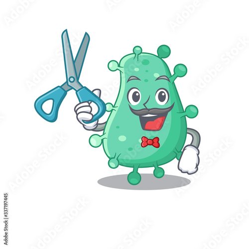 Sporty agrobacterium tumefaciens cartoon character design with barber