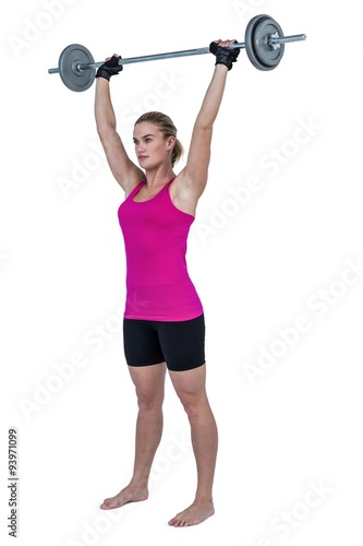 Sporty female bodybuilder lifting barebell