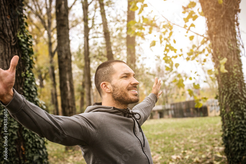 Sporty man with arms outstretched.