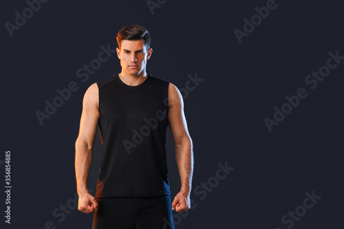 Sporty young man on dark background