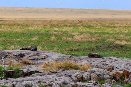Spotted hyena (Crocuta crocuta), also known as the laughing hyena, in Serengeti National park in Tanzania