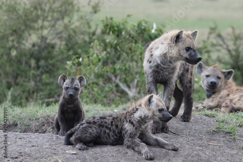 Spotted hyena cubs, Masai Mara National Park, Kenya.