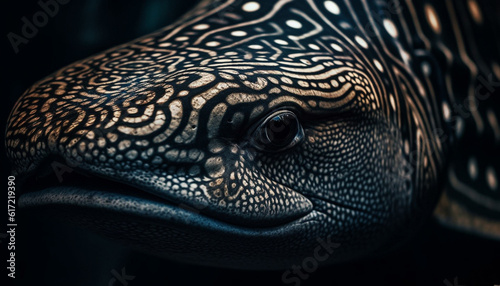 Spotted lizard portrait with selective focus on animal eye generated by AI