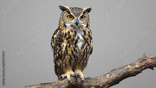 Spotted owl resting on invisible perch with minimal background, forward-facing, crisp feather detail