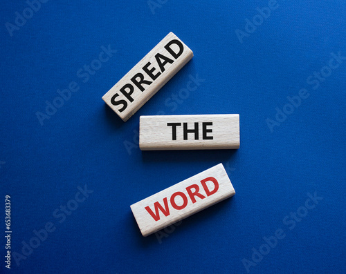 Spread the Word symbol. Concept wordsSpread the Word on wooden blocks. Beautiful deep blue background. Business and Spread the Word concept. Copy space.